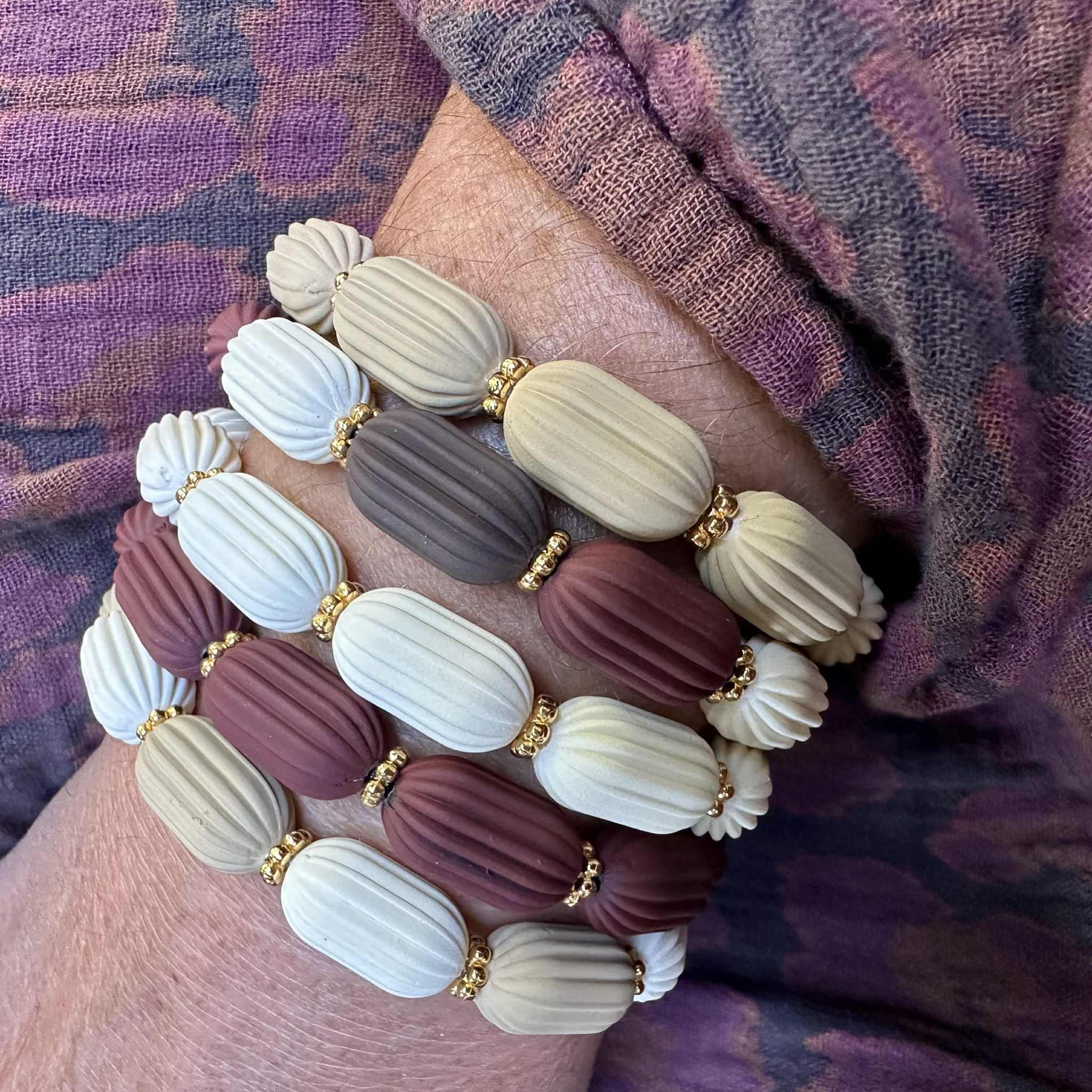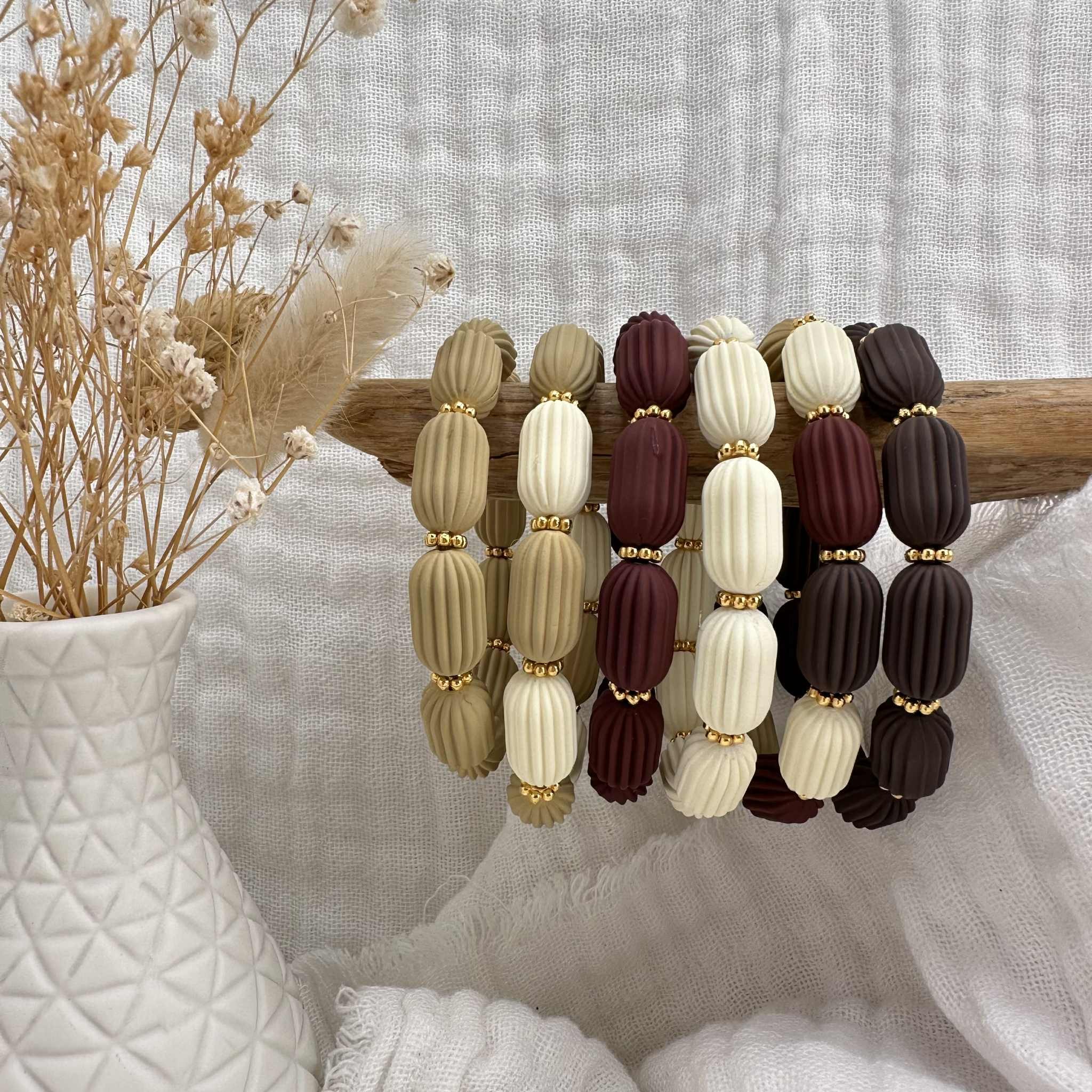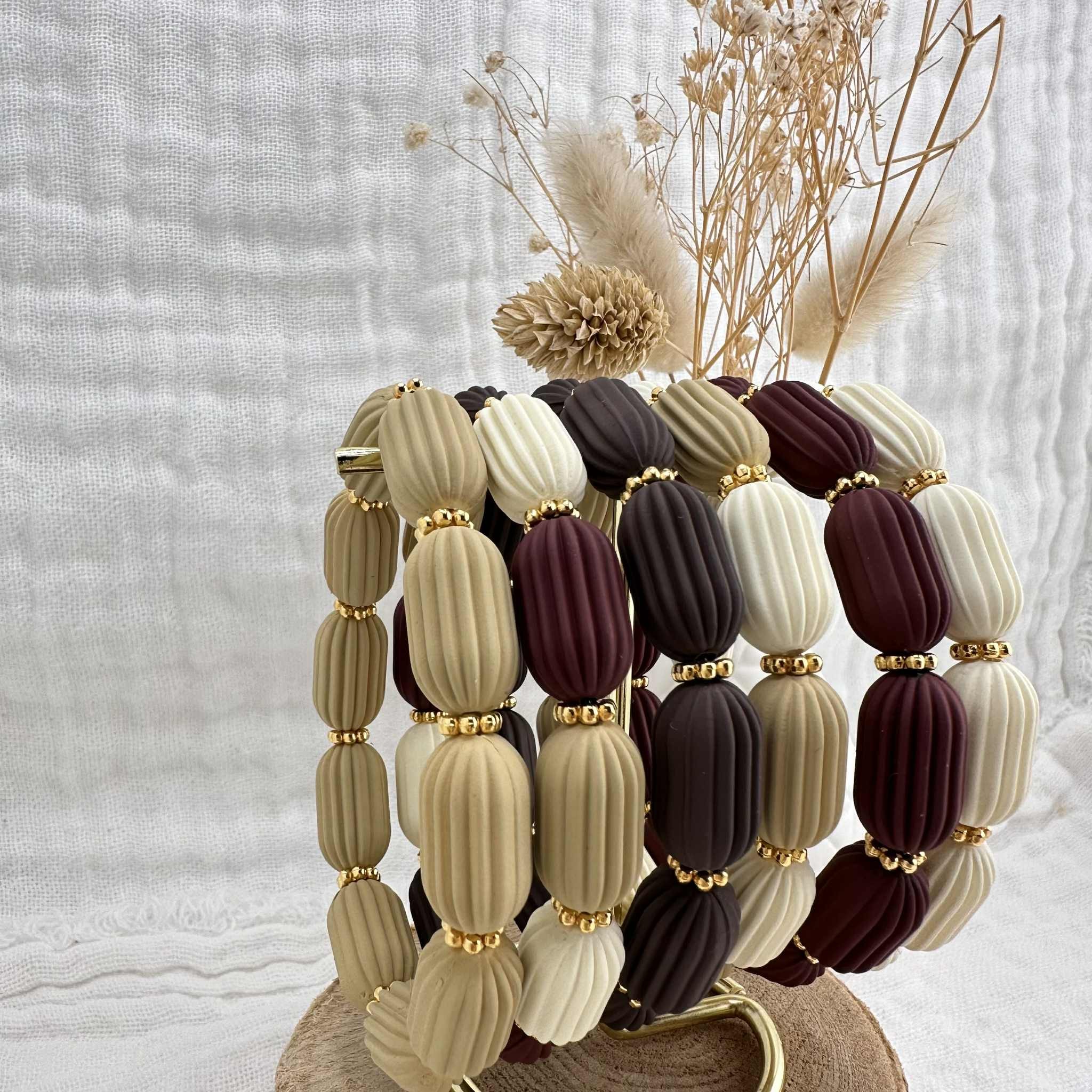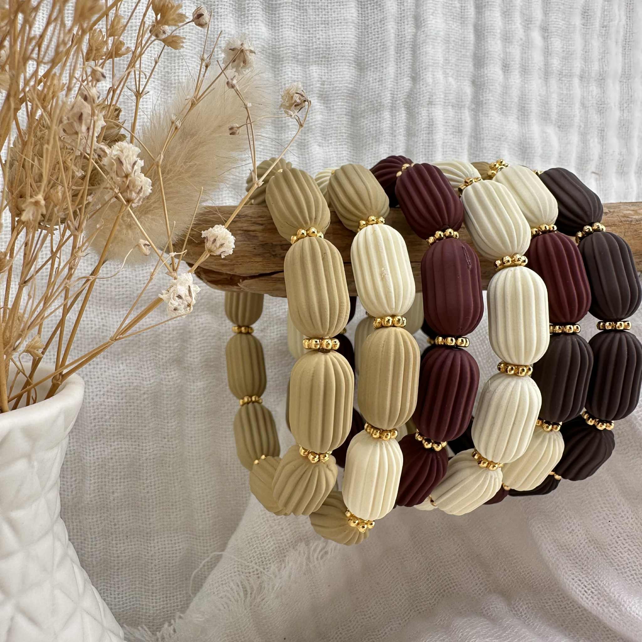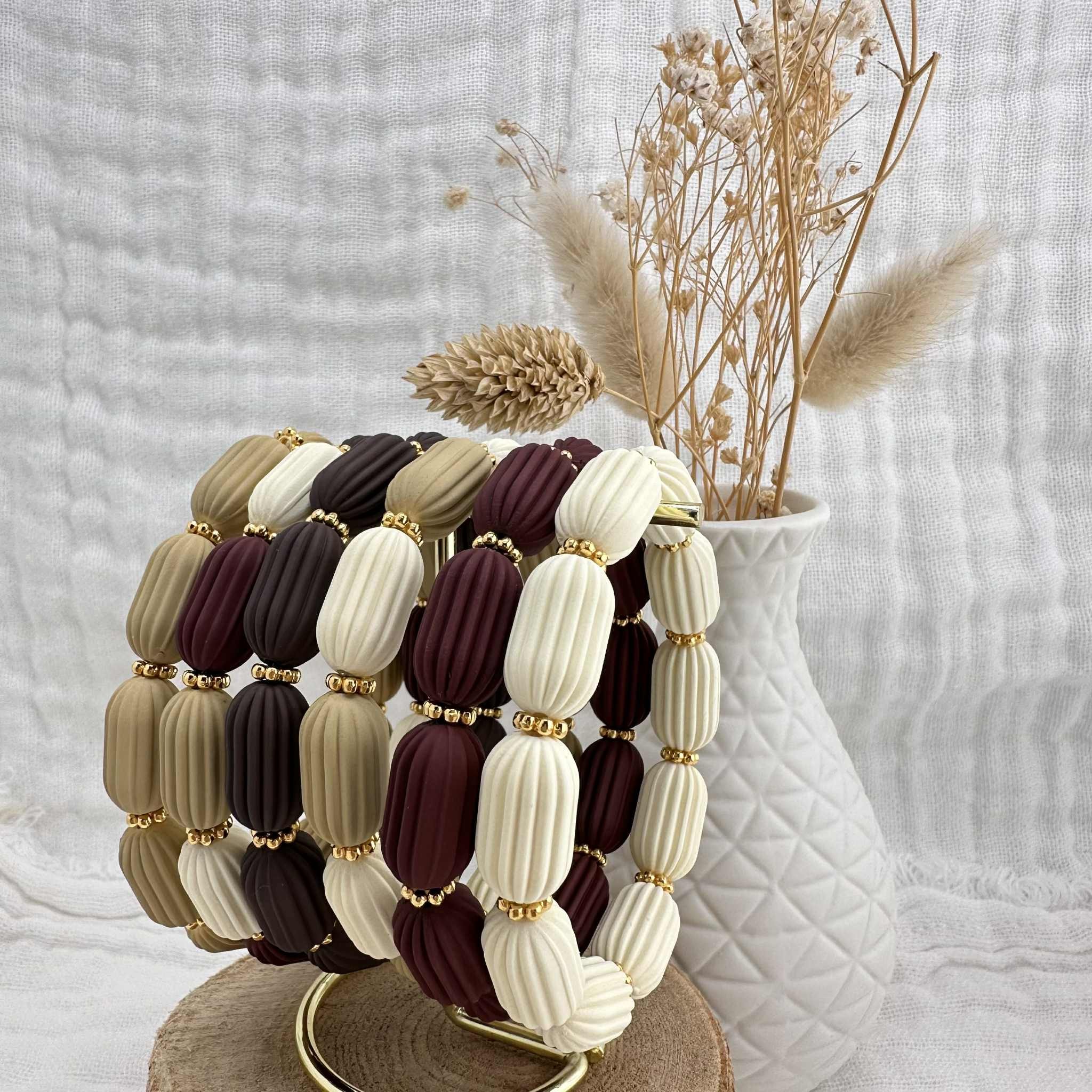 bracelet - idée cadeau - cadeau fille - cadeau femme - accumulation bracelets - création - saint-valentin - cadeau - idée cadeau fille - cadeau anniversaire - perle striée - bracelet élastique - bijoux coloré - bracelet fantaisie - bracelet original - bijoux fantaisie - gros bracelets - bijoux vintage - bracelets vintage - vintage - perle acrylique - bracelet élastique - bijoux tendance - bijoux couleurs automne - bijou tonailté marron - bijou chic - bracelet multicolore - bijou élégant - bijou fait main - atelier Bordeaux - créatrice bijoux - bijou bordeaux