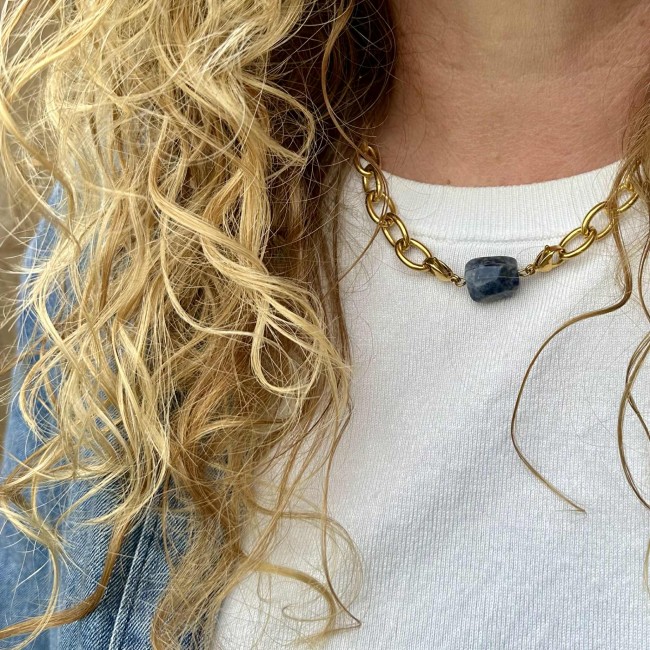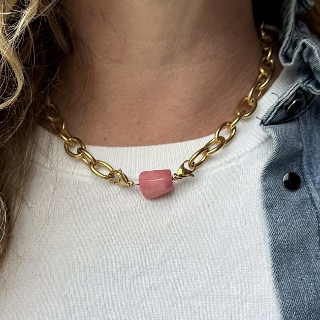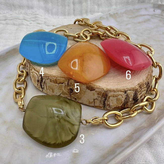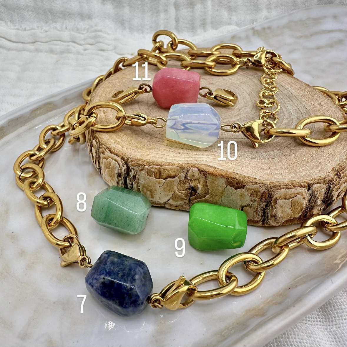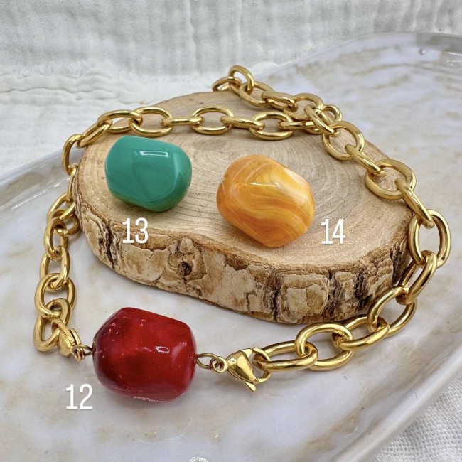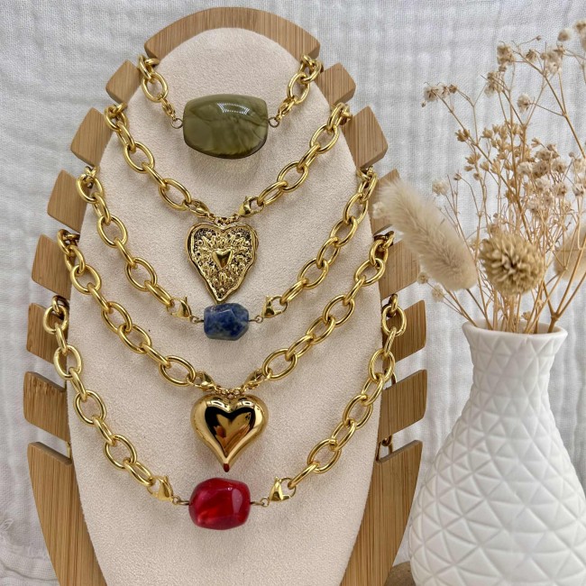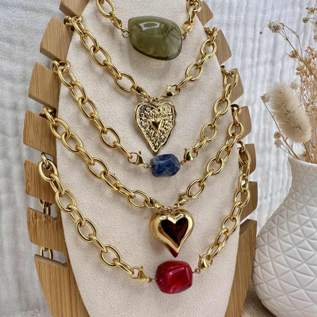Matière: chaîne: acier inoxydable doré - pendentifs: acier inox, résine ou pierre naturelle