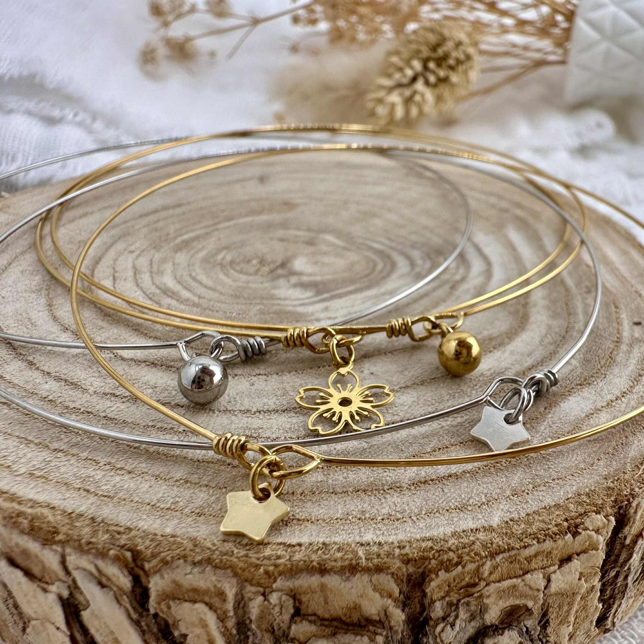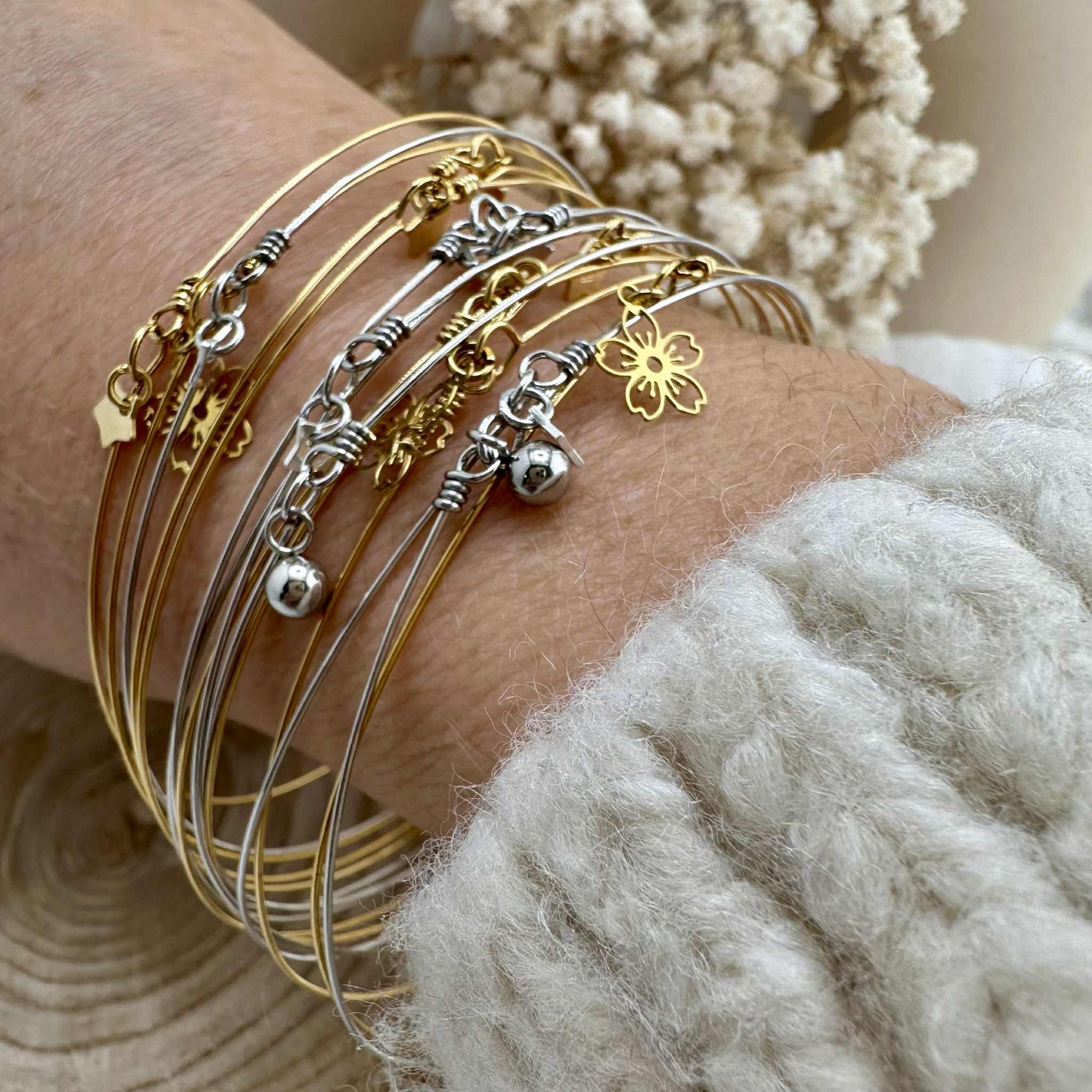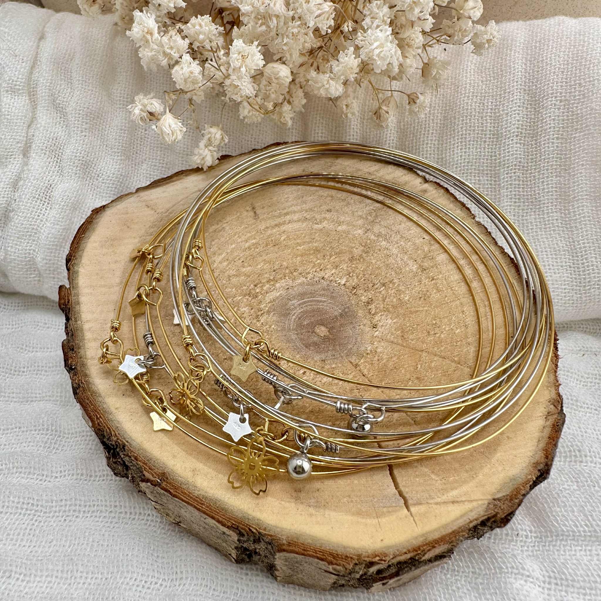 bracelet fin - minimalisme - jonc fin - bracelet jonc - bracelet minimaliste - jonc fin - jonc argenté - jonc doré - idée cadeau - cadeau fille - cadeau femme - accumulation bracelets - création - bijoux ultra fins - bracelet délicat - bijou intemporel - bijou taille unique - bracelet ultra fin - semainier - bracelet brillant - jonc scintillant - bracelet fil - mini breloque - pampille - acier inoxydable - bijoux résistant - fleur - étoile - perle - atelier crétion - bijou fait main - Pessac - Bordeaux