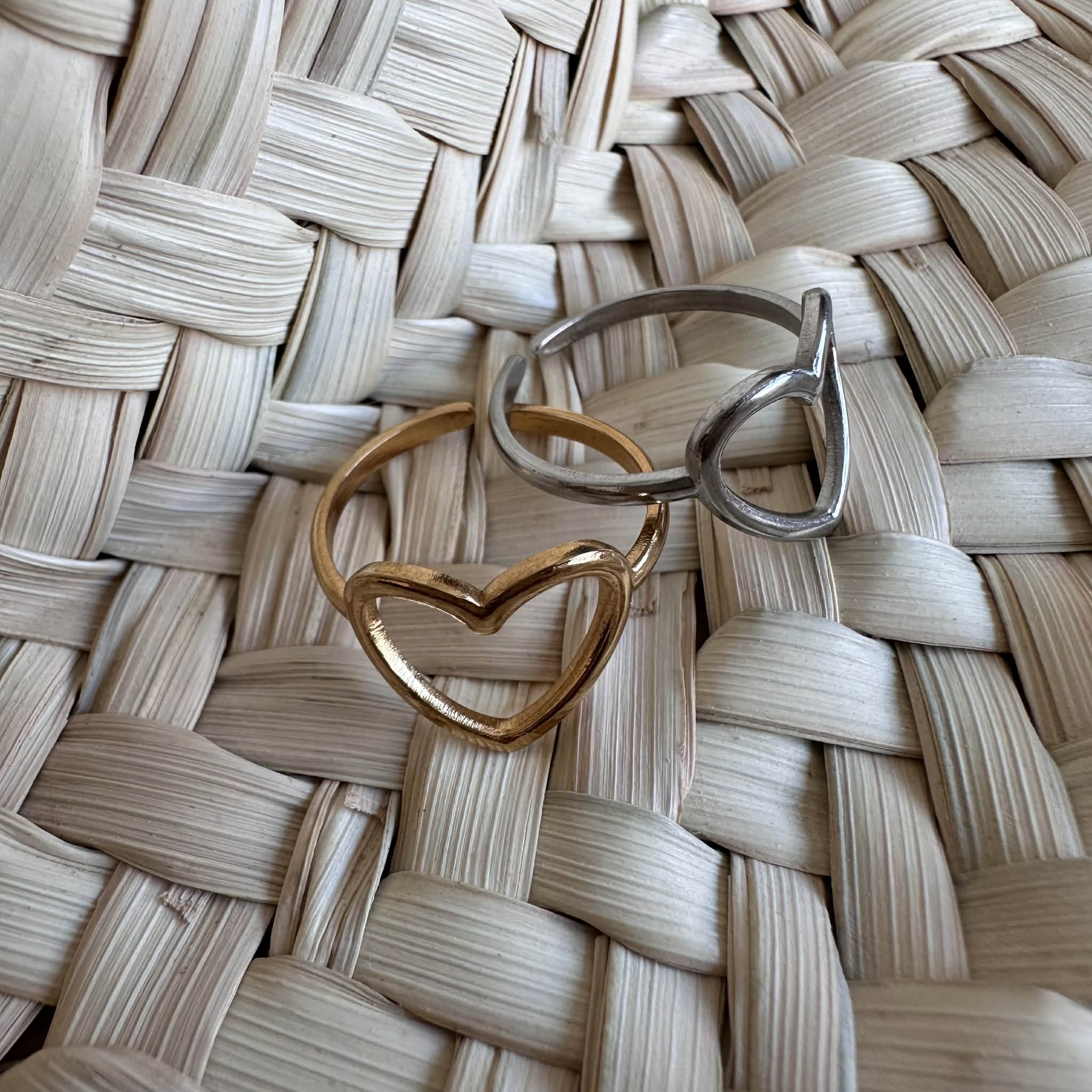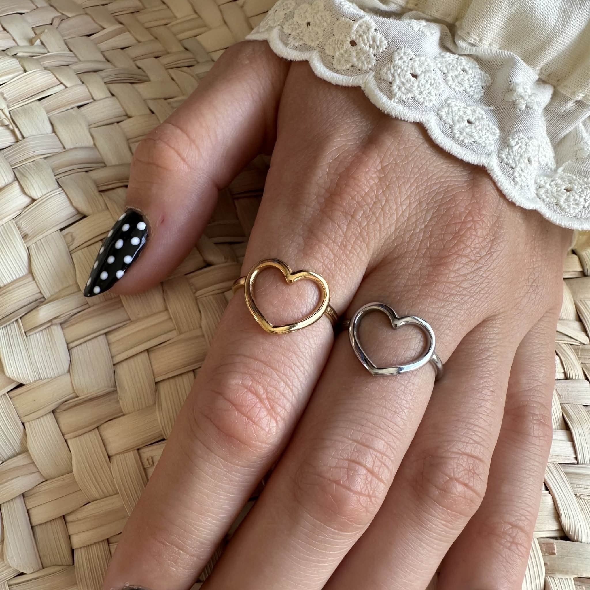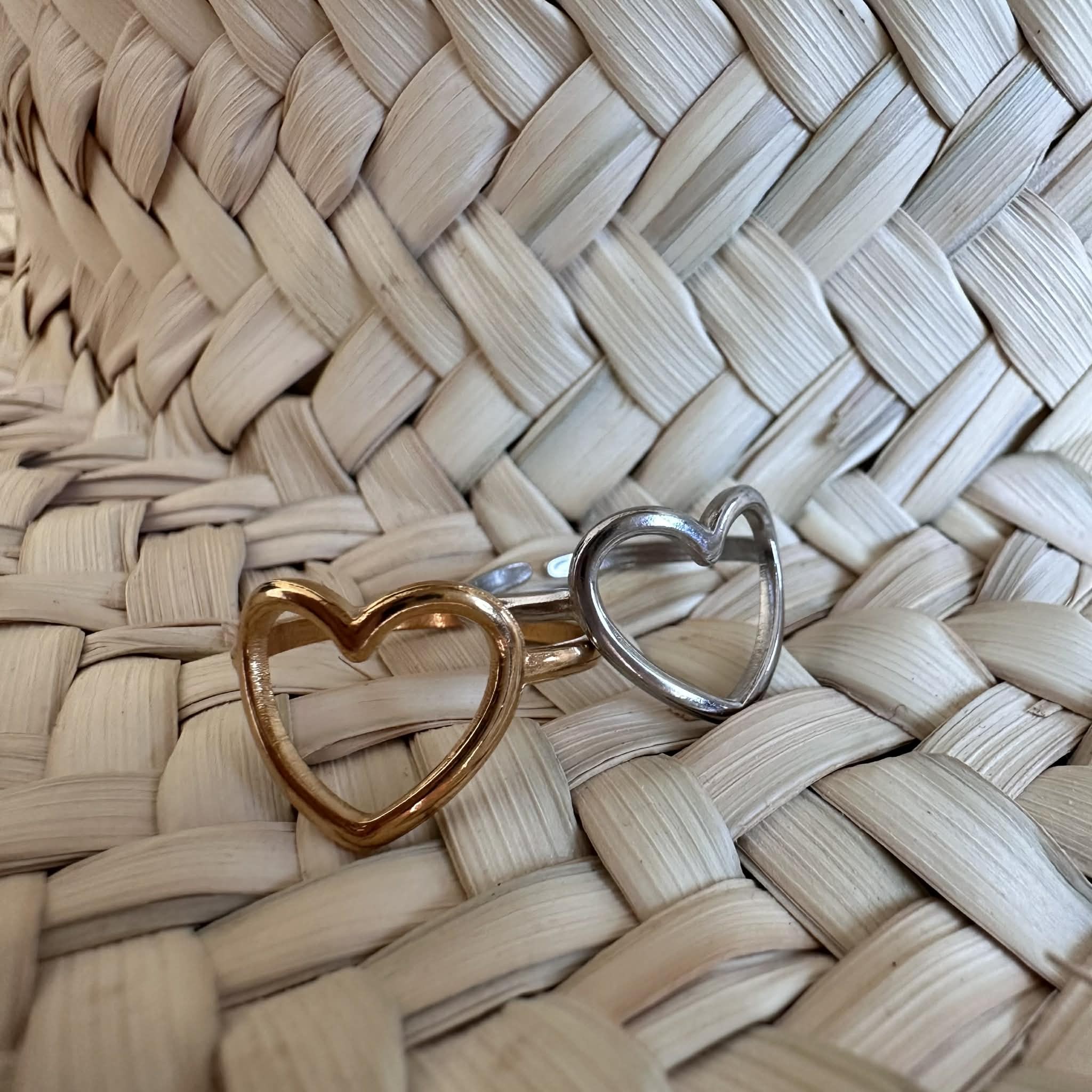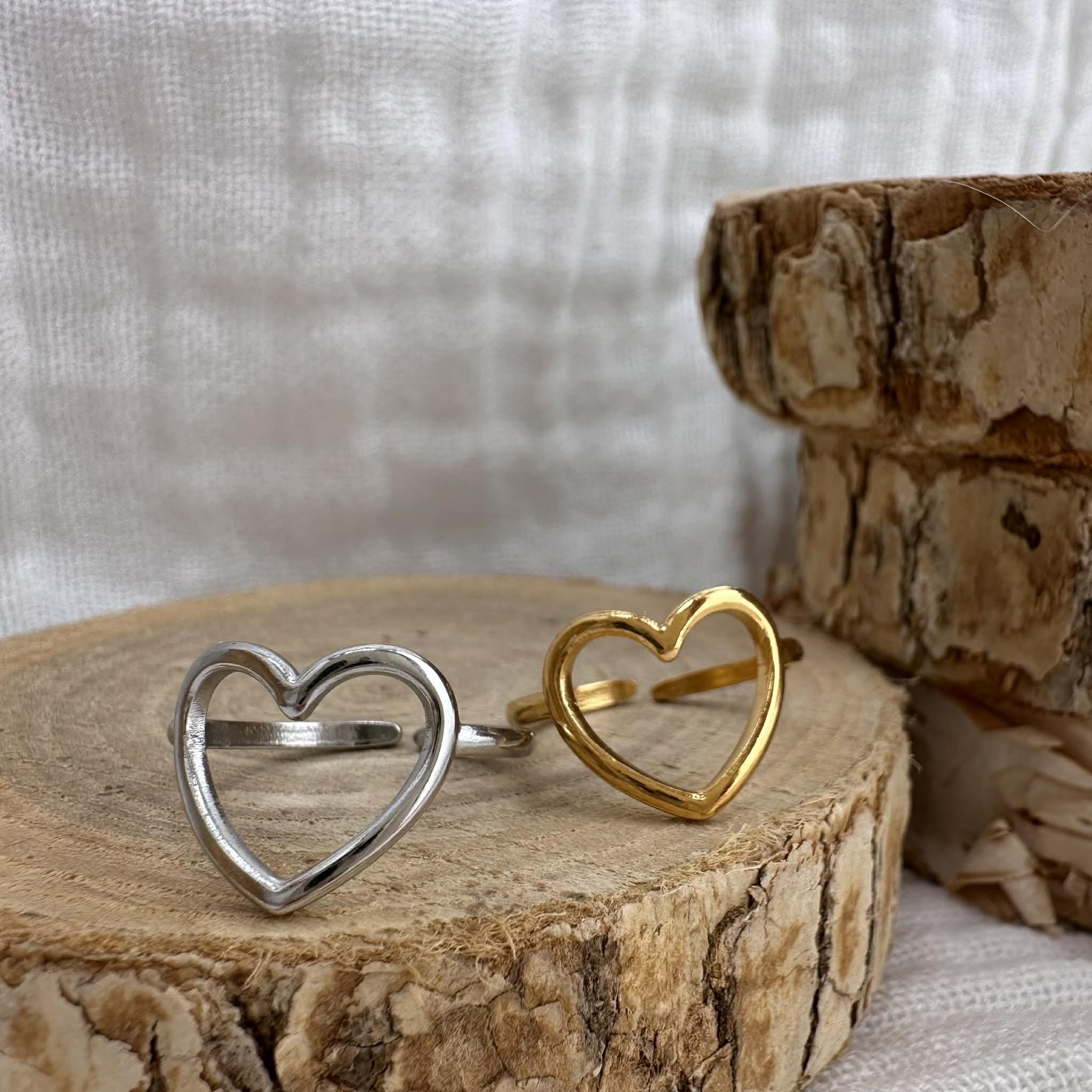 Bague cœur ajustable femme en acier inoxydable – dorée ou argentée, idée cadeau