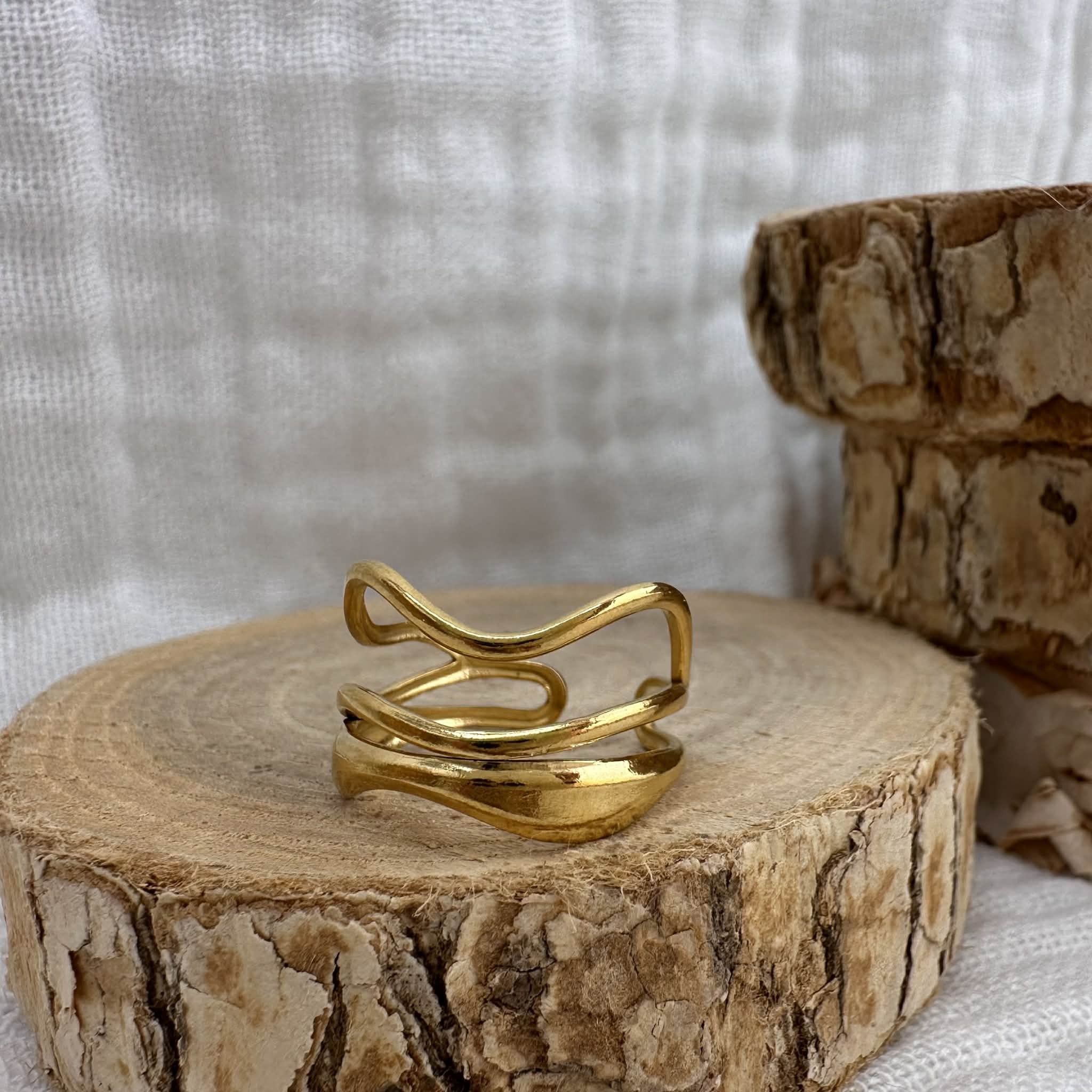 Bague ajustable "Ola", acier inoxydable doré