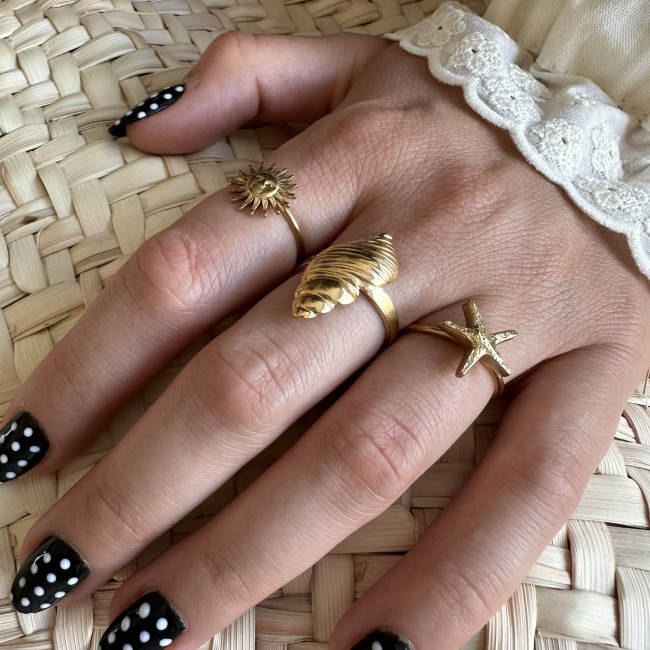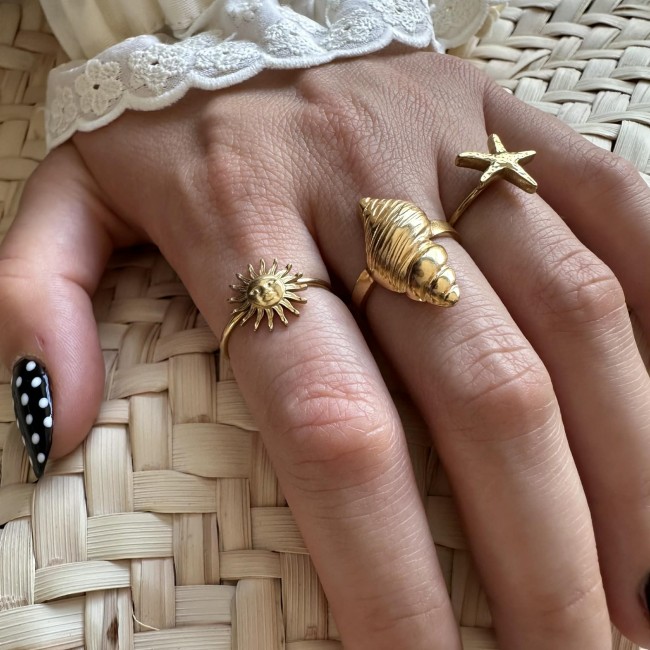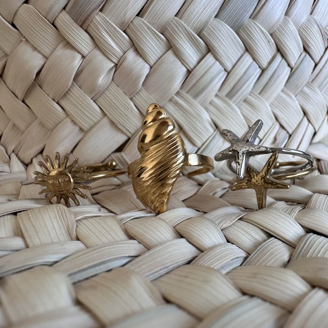 Bagues ajustables "Océane", étoile de mer acier inoxydable doré ou argenté