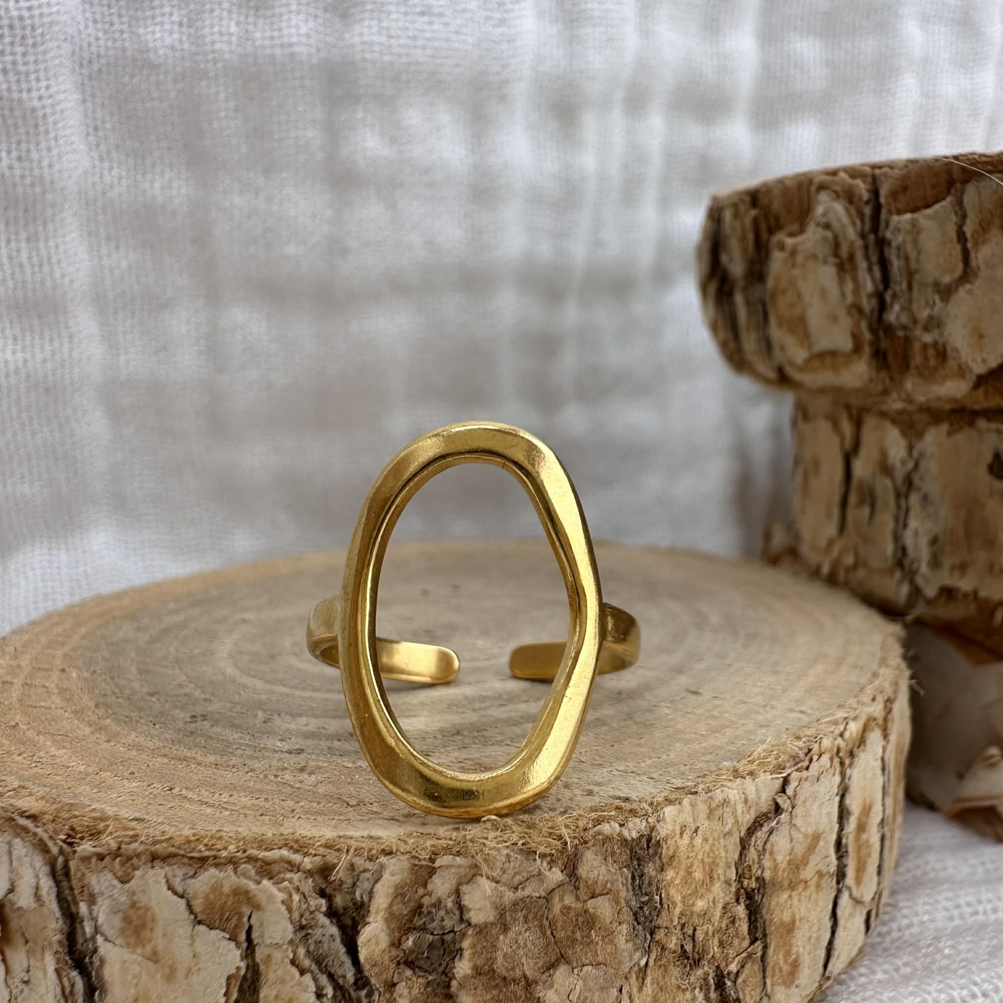 Bague ajustable "Lancelot", ovale acier inoxydable doré